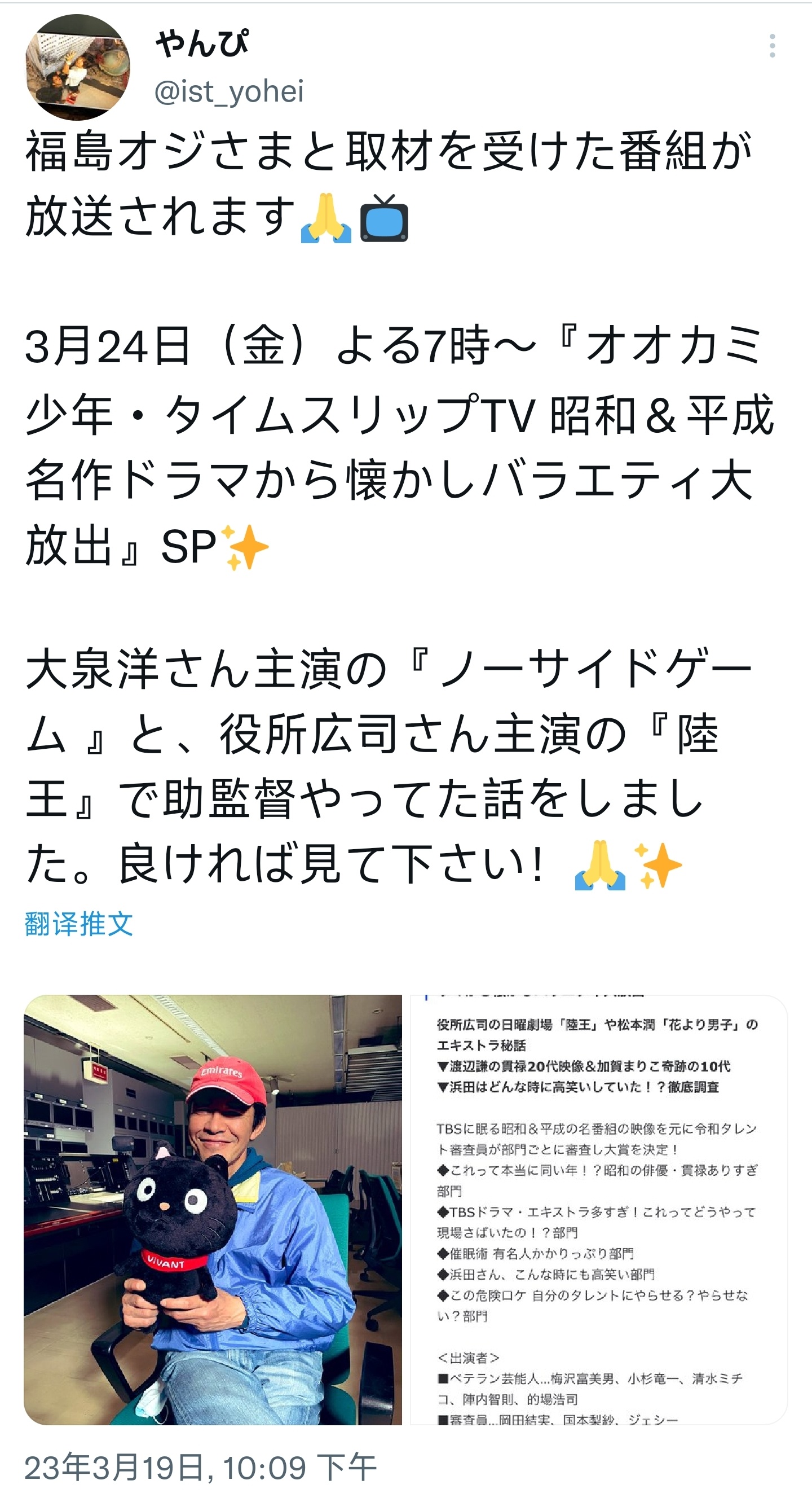 首次登场!来自于 TBS演出部 宫崎洋平 的 Twitter